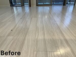 【施工内容】フロアコーティング LGコート 【施工範囲】全室 【住居種類】新築マンション 他 水廻りコーティング(キッチン・洗面・浴室)・浴室ミラーフィルム施工